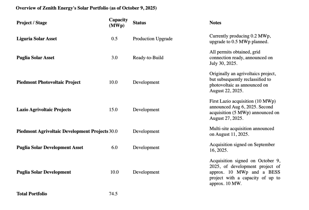 Zenith Energy ha firmato un nuovo accordo per l’acquisizione di un progetto di sviluppo di energia solare situato nella regione Puglia da parte della sua controllata italiana Wesolar Srl, creata per gestire il suo portafoglio di energia solare.