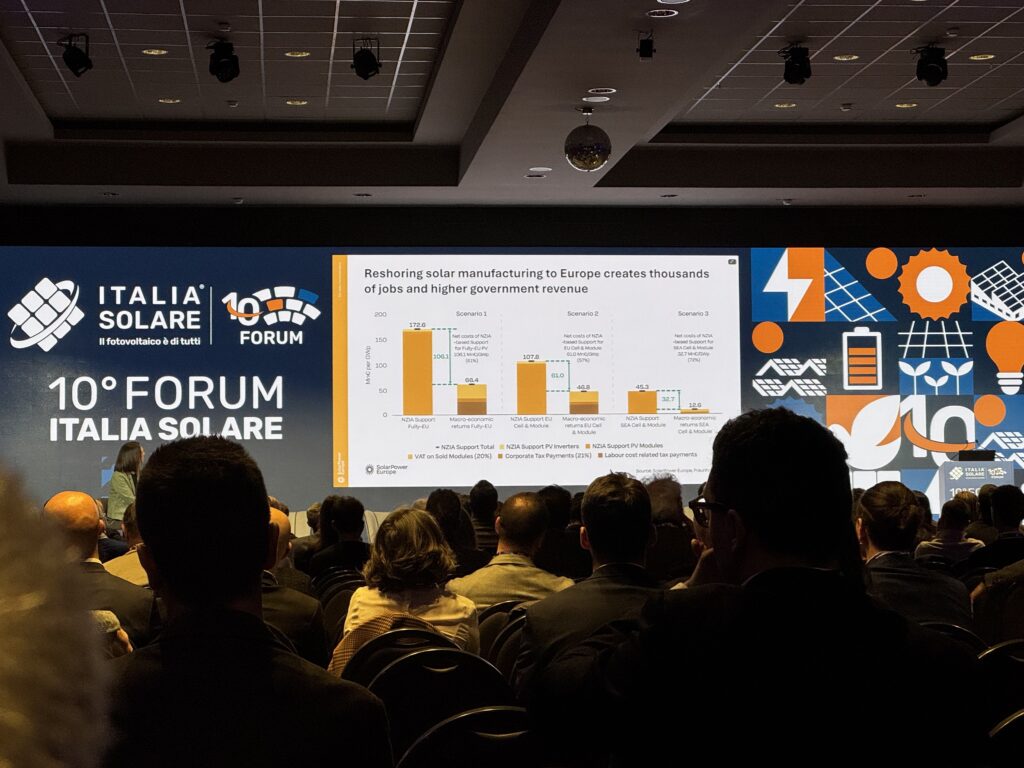 Il sistema Italia si è però già mosso, come detto da Andrea Rovera, country manager di Gruppo Green Design e consigliere Italia Solare. Rovera ha sottolineato la possibilità di riportare la produzione in Italia, ma ha anche rilevato come l’obiettivo primario del NetZero Industry Act e specificatamente del Fer X transitorio con non price criteria non fosse produrre in Europa, ma differenziare le forniture.