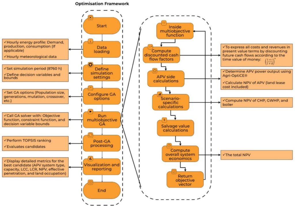 “Questo studio presenta il primo quadro di ottimizzazione che integra sistemi agrivoltaici bifacciali (APV) con impianti di digestione anaerobica progettati specificamente per la produzione di biometano”, ha dichiarato l’autore corrispondente Amirhossein Nik Zad a pv magazine. “A nostra conoscenza, nessuna ricerca precedente ha combinato un algoritmo genetico multi-obiettivo con la metodologia di classificazione Topsis in questo contesto di APV-biometanazione”.