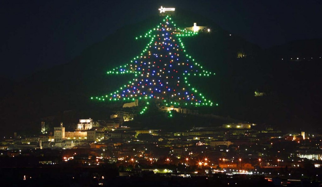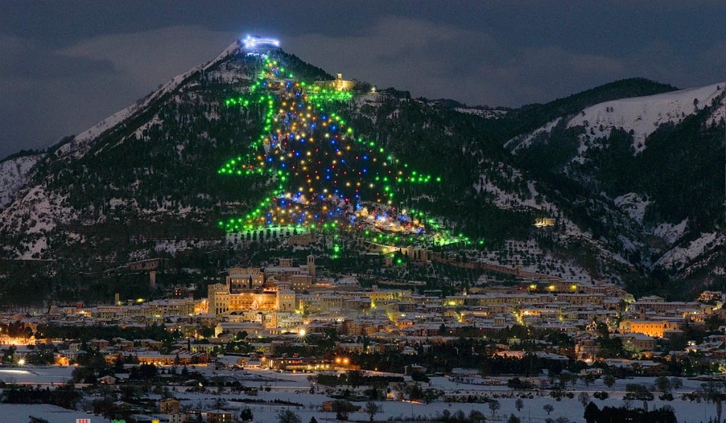 L’Albero di Natale di Gubbio, simbolo del Natale in Umbria, è un’installazione luminosa monumentale sulle pendici del Monte Ingino, riconosciuta dal Guinness World Records dal 1991 come albero di Natale più grande del mondo. Nel 2025 siamo arrivati alla 45ª edizione e l’accensione è avvenuta, come di consueto il 7 dicembre.