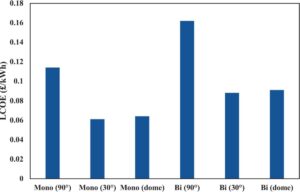 I risultati hanno mostrato che il sistema bifacciale con un’inclinazione di 30 gradi ha generato la maggior quantità di elettricità, pari a 7.919 kWh all’anno, mentre la configurazione monofacciale a 30 gradi ha fornito il costo livellato dell’elettricità più basso, pari a 0,061 GBP (0,082 USD)/kWh. La resa dei pomodori è stata costante in tutte le configurazioni, pari a 0,31 kg per metro quadrato. Tra le opzioni di vetratura, le finestre gasocromatiche/fotocromatiche sottovuoto hanno ottenuto le migliori prestazioni termiche, con un valore U di 1,32 W per metro quadrato-kelvin, sebbene con uno spessore maggiore di 24,62 mm.