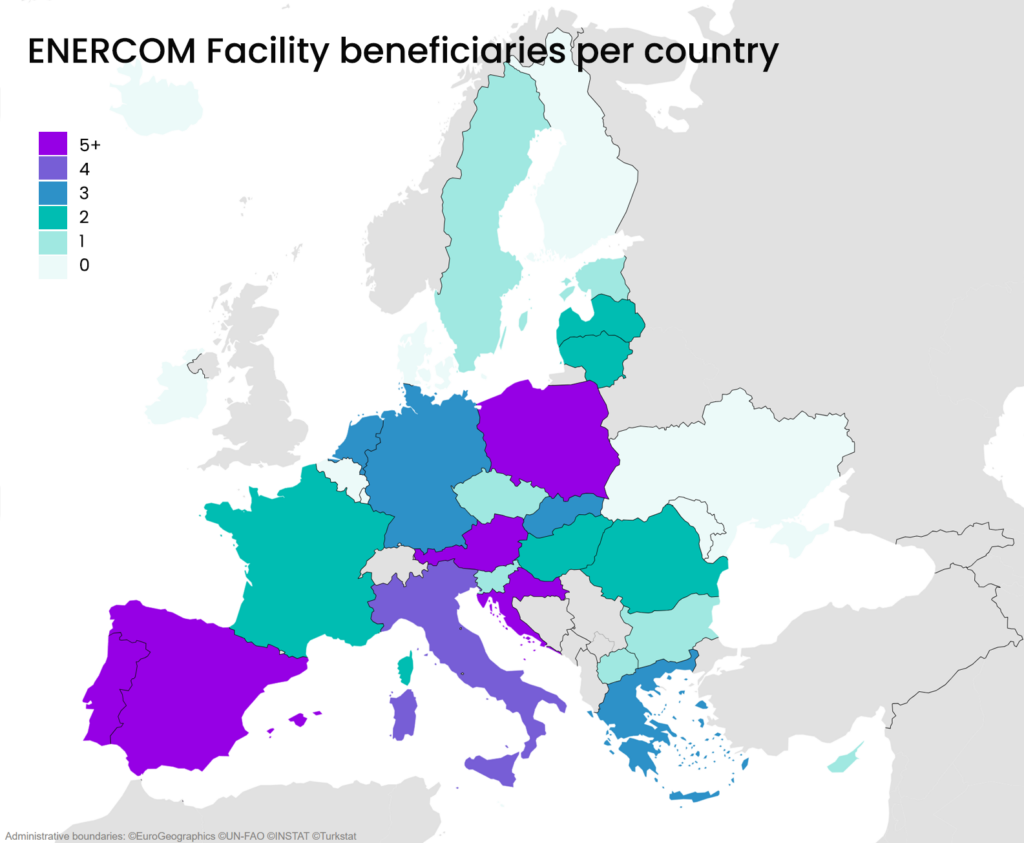 I progetti beneficiari provengono da 22 paesi diversi, con Austria e Spagna come paesi con il maggior numero di candidature selezionate. L’Italia conta 4 progetti italiani selezionati: CER Sicilia ETS, CER Valtellina di Sondrio, CER Alta Valle del Conca ETS e CER Lucense 1923 SB.