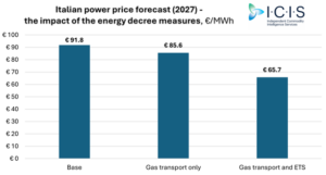 La vostra modellizzazione indica che il rimborso delle tariffe di trasporto del gas ridurrebbe i prezzi italiani Cal 2027 di circa 6,3 €/MWh. Se venisse attuato anche il rimborso ETS, i prezzi PUN 2027 diminuirebbero di 26,1 €/MWh rispetto al vostro scenario di base. Giusto? Potreste spiegare?