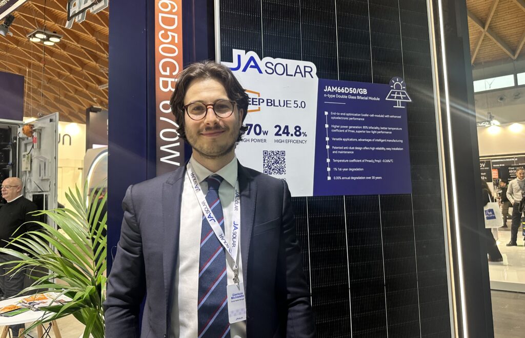 AL KEY 2026 di Rimini, pv magazine Italia ha incontrato Gianluca Micheletto, del marketing di JA Solar Europe, che ha spiegato le novità presso lo stand. “DeepBlue 5.0 è la quinta generazione della nostra piattaforma TopCon. Il nuovo modulo raccoglie l’eredità del DeepBlue 4.0 Pro, mantenendone ingombri e filosofia di sistema ma alzando l’asticella in termini di potenza e rendimento, con una riduzione del LCOE rispetto alla generazione precedente”.
