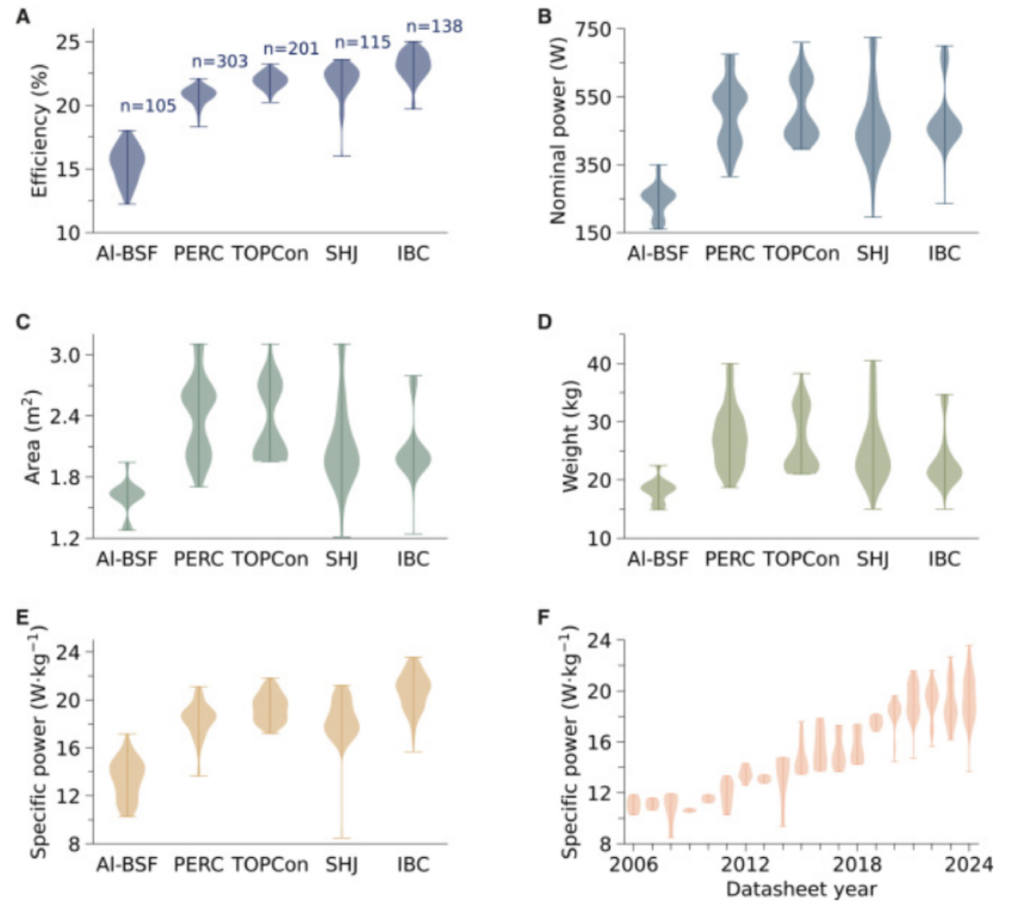Un team di ricerca internazionale ha rilevato che la potenza specifica dei moduli solari commerciali in silicio è aumentata da circa 8,5 W/kg nei primi anni 2000 a 23,6 W/kg oggi.