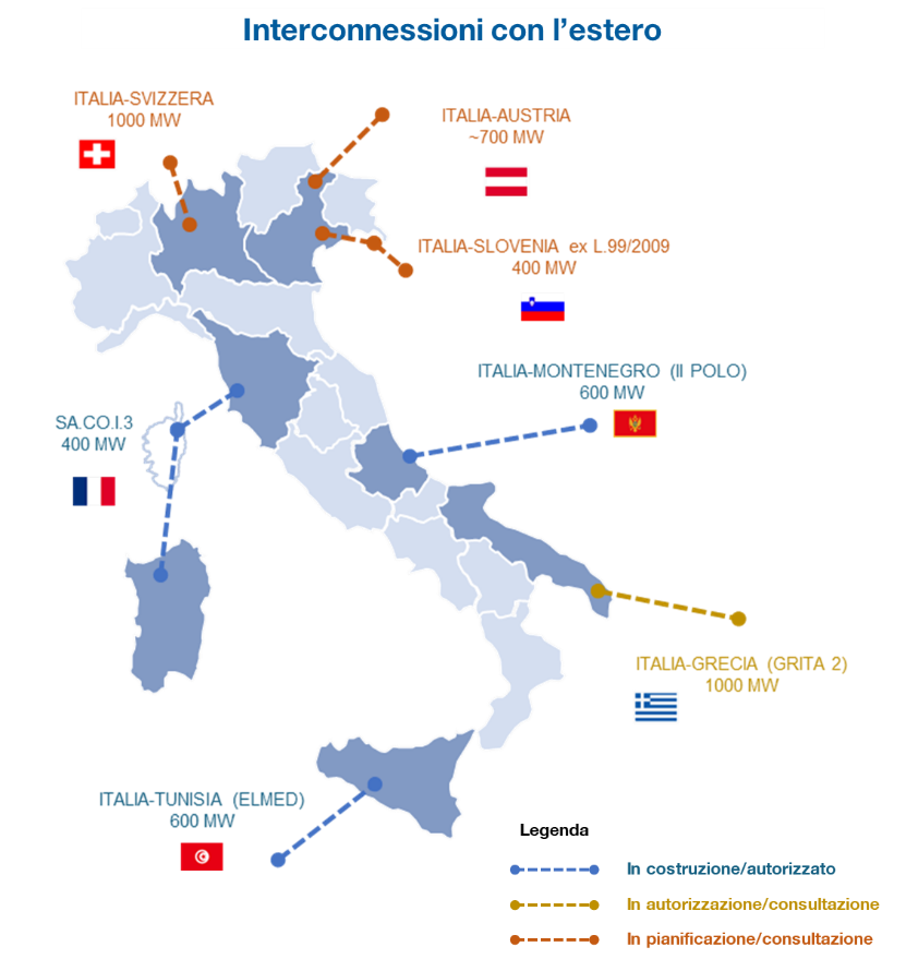 La società mira anche a potenziare le interconnessioni con l’estero. Tra i principali progetti pianificati: