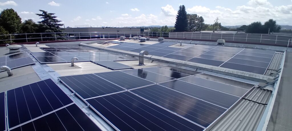 L’impianto fotovoltaico installato ha una potenza di 196,75 kWp ed è composto da 361 moduli TCL SunPower Performance 7 e inverter SMA modelli Core 1 e Core 2. Inoltre, è presente un sistema di accumulo energetico SMA Commercial Storage Solution da 32 kWh, composto da un inverter SMA Storage X 30 kW (carica/scarica 30 kW) e un sistema di accumulo SMA Commercial da 32 kWh con DOD 100%.