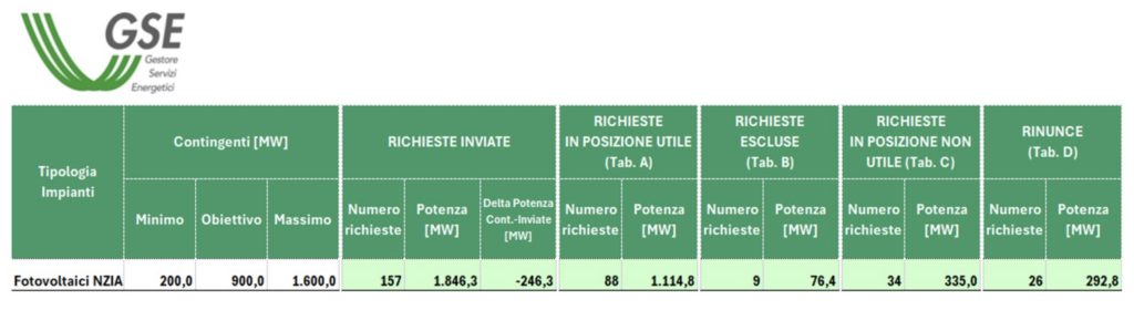 Il GSE ha inoltre pubblicato una nota riepilogativa con evidenza del contingente di potenza disponibile, del numero e della potenza degli impianti iscritti e ammessi in posizione utile, le curve di domanda e di offerta e le informazioni relative alla distribuzione su base provinciale della potenza e delle richieste ammesse.