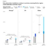 Secondo un rapporto di *McKinsey & Company*, la relativa facilità nella realizzazione di impianti fotovoltaici farà sì che Stati Uniti ed Europa riescano probabilmente a raggiungere i propri obiettivi di capacità installata entro la fine del decennio, nonostante gli attuali gap nelle pipeline di circa 205 GW e 181 GW.