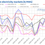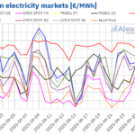 Aumentano i prezzi nel continente, a causa del calo della produzione di energia solare ed eolica nella maggior parte dei mercati, ma anche in virtù dell’aumento della domanda di elettricità in molti mercati. Prezzo dell’energia in Italia praticamente stabile, diminuzione in Spagna e Portogallo.