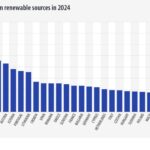 La quota rinnovabile nel 2024 ha raggiunto il 25,2%, rispetto al 9,6% del 2004, con un incremento di 0,7 punti percentuali rispetto al 2023. L’Italia in questa classifica si attesta sotto la media europea con circa il 20% di consumi coperti da fonti rinnovabili.